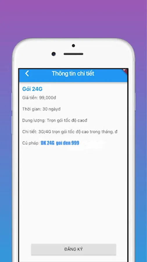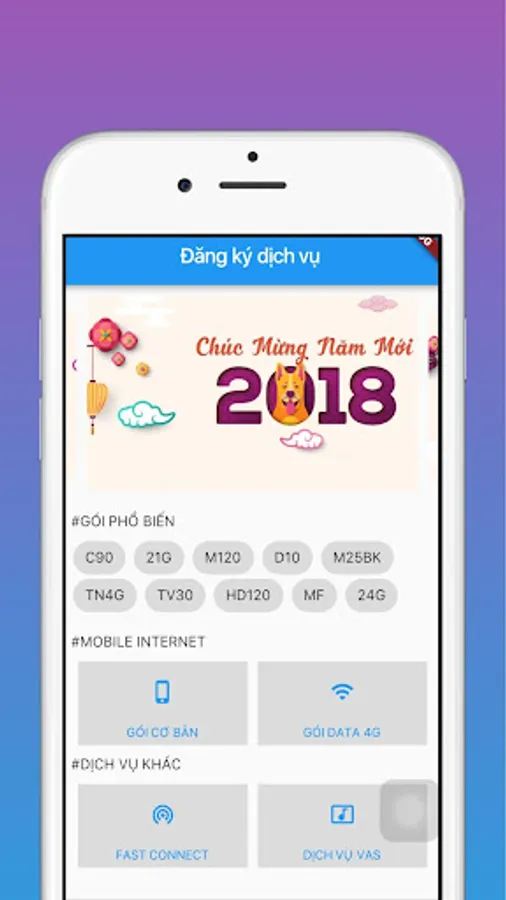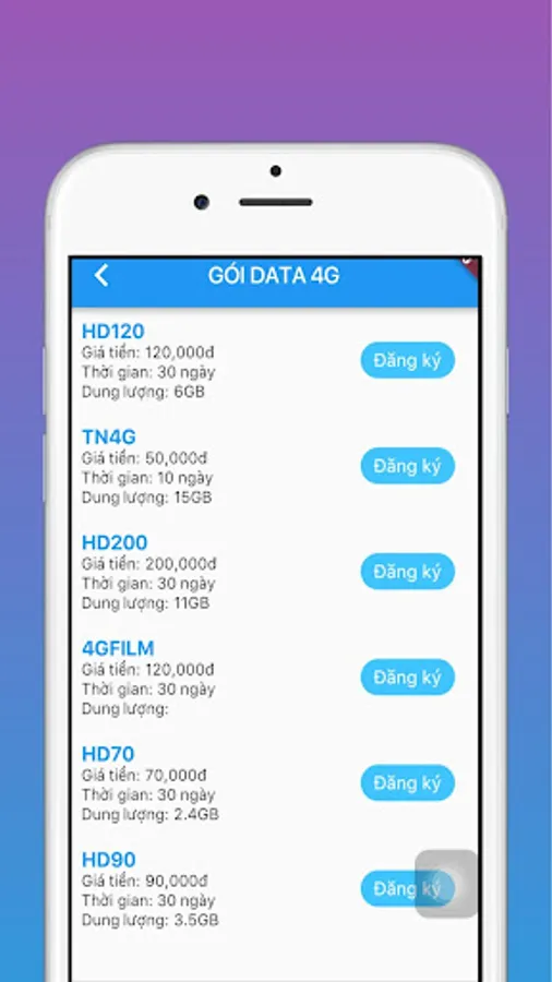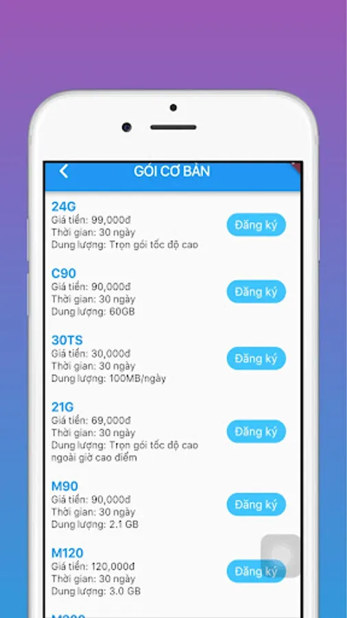- App supports lookup information (price, time, size) of the data package 3G, 4G and VAS services.