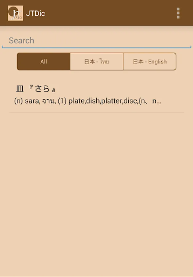 - Flexible search (by Kanji, Hiragana, romanji, english or thai)