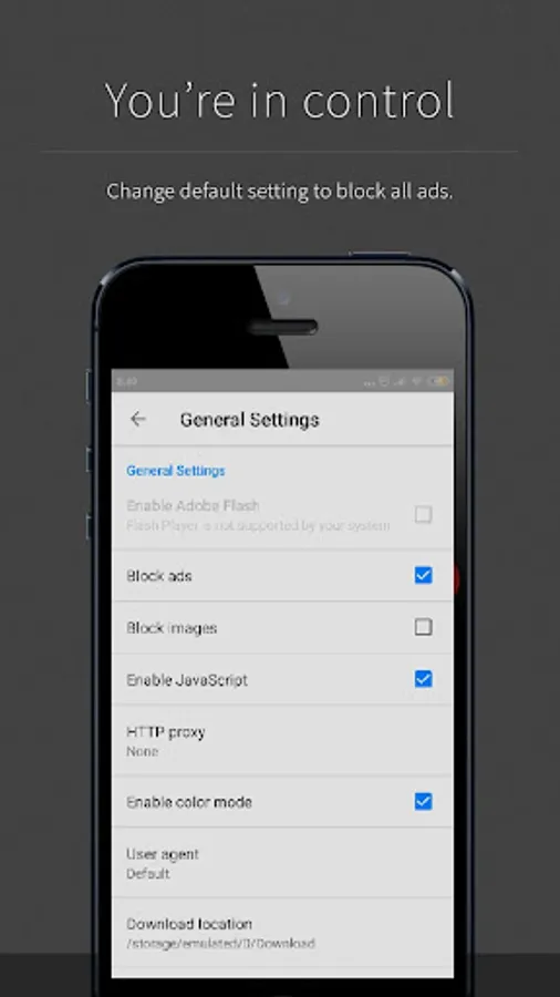 A built-in ad blocker. Block annoying and intrusive ads, such as ads on videos, saving data and battery life in the process. By default, respectful ads that meet the strict criteria of the Acceptable Ads initiative are shown, which helps support great content creators. Want to block all ads? No problem. Easy to use options allow you to control what you see.