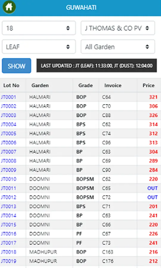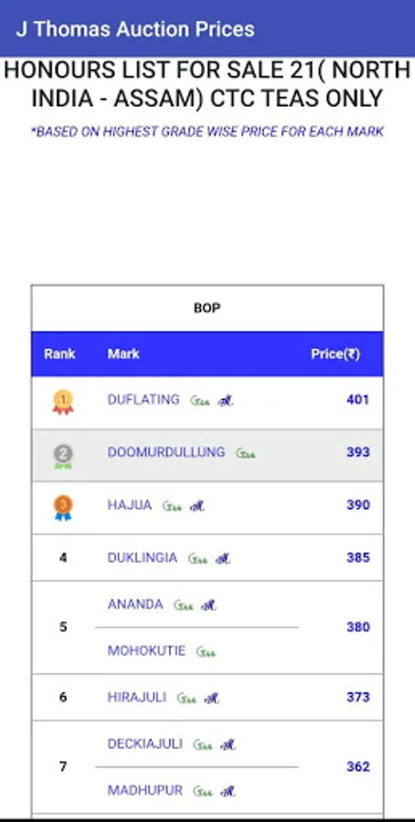 North India Auction Prices (CTTA, GTAC , STAC), Honour List, North India Price Range Comparison,