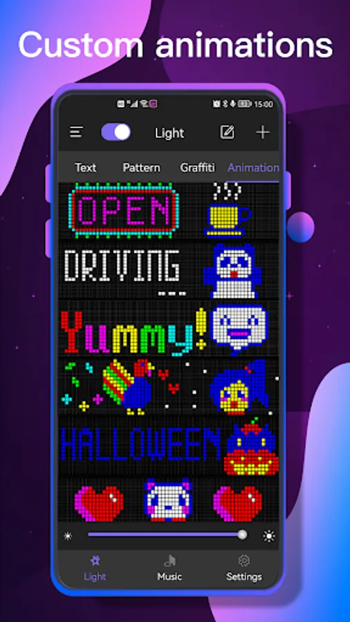 CoolLED1248 can control LED flexible display through the mobile phone APP to achieve patterns, text, graffiti, music rhythm, microphone rhythm function.
