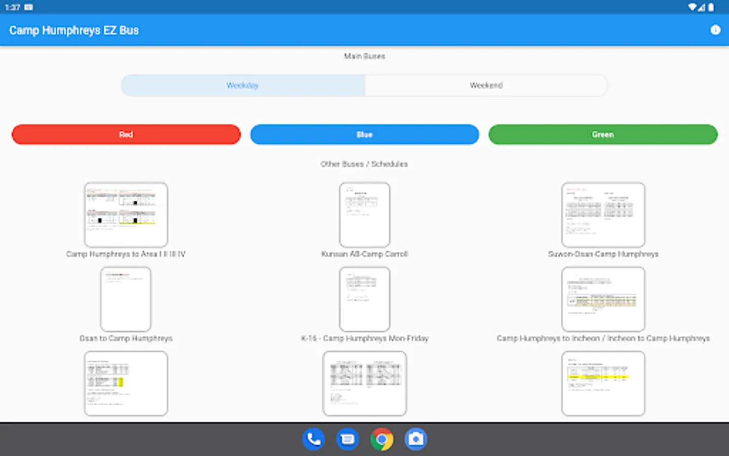EZ Bus is the fastest and easiest way to find bus stops and times on Camp Humphreys. Stop straining to read the schedules on your phone or the print-outs at the bus stops! This application is as easy as 1-2-3!