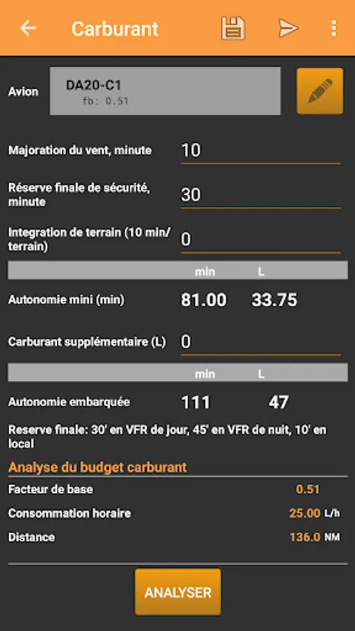 ✔ Export flight plan, fuel budget and weights balance to PDF file