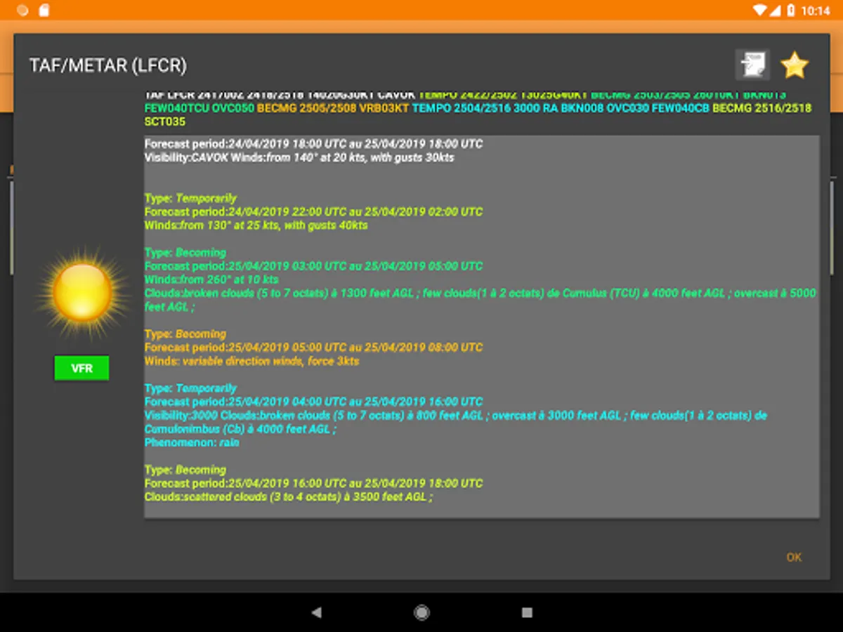 ✔ Checking of the validity of information (VAC, METAR/TAF, ...)