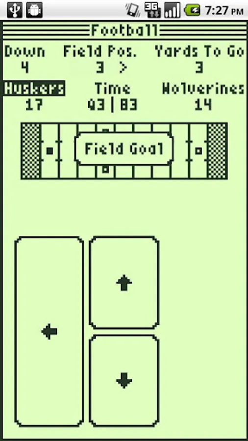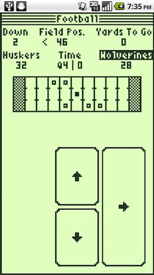 Play a retro (American) football game against a computer defense. Find a friend and play together.