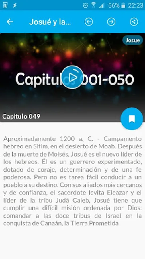 Approximately 1200 a. C. - Hebrew camp in Sitim, in the desert of Moab. After the death of Moses, Joshua is the new leader of the Hebrews. He is an experienced warrior, endowed with courage, determination and a powerful faith. But it is not an easy task to lead a people to their destination. With his closest and most trusted allies, the Levite priest Eleazar and the leader of the Judah Caleb tribe, Joshua has to fulfill a difficult mission commanded by God: command the twelve tribes of Israel in the conquest of Canaan, the Promised Land