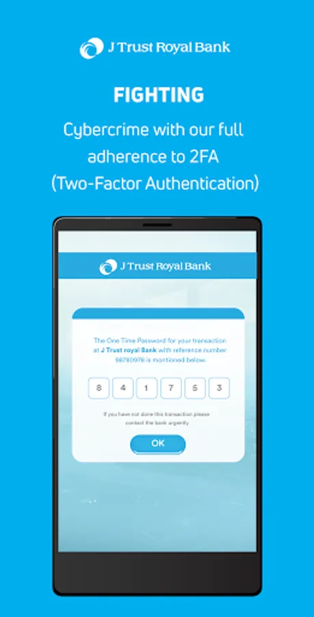 JTRB Authenticator works as two-factor authentication (2FA), providing a total of 3-layer security: (1) User name & Password, (2) One-Time-Password "OTP", as a second security layer when logging in JTR Connect and (3) transactional OTP, as the third layer, when processing your payments on JTR-Connect.