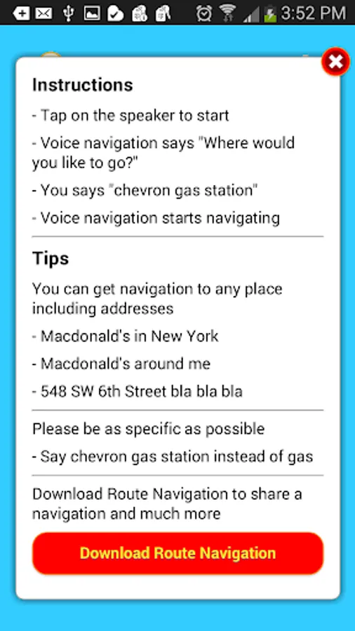 Voice Navigation is the fastest and easiest application to get navigation. Just like the name implies, Voice Navigation is the first all voice operated navigation system. Just say where you are going and Voice Navigation will get you there. Choose between driving, biking, walking and busing directions. Our study has shown that Voice Navigation is more than 5 times faster than other apps.