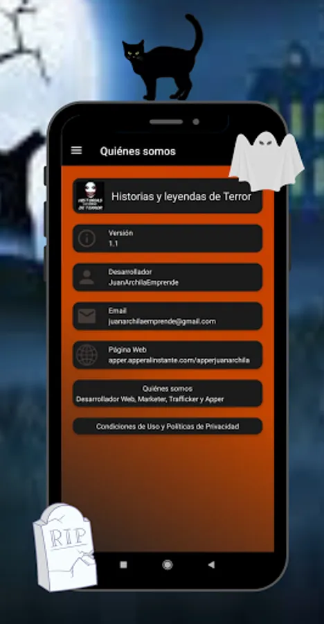 In the About section you will find our email so that you can send us the Stories, Legends of terror or fear, urban legends, real stories that give fear to be able to publish them in our app.