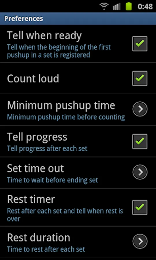 * Rest time control after each push ups set