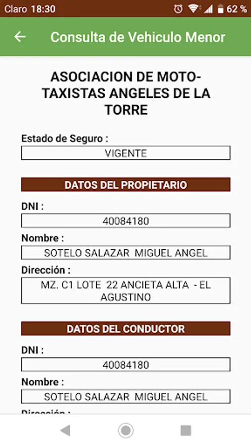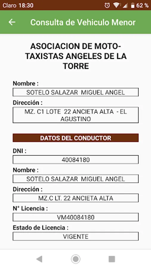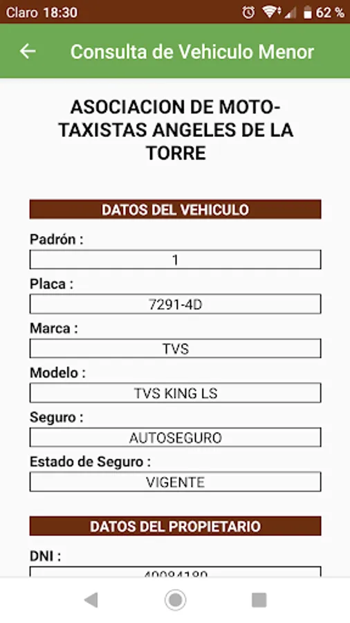 - Check if the plate consulted is REGISTERED in the municipal registry of Agustino