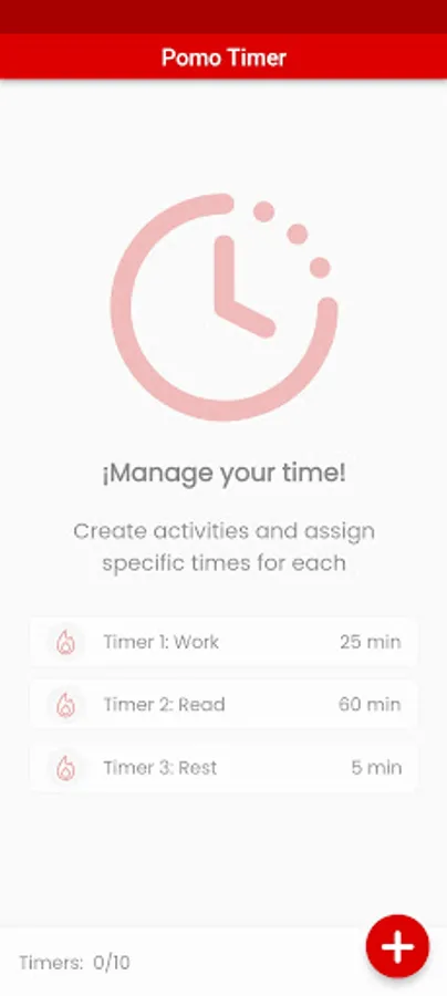 Create an activity, select the time you want to dedicate to it, and start working on it until the time is up. This application is inspired by the ancient Japanese technique Pomodoro for maximizing productivity.