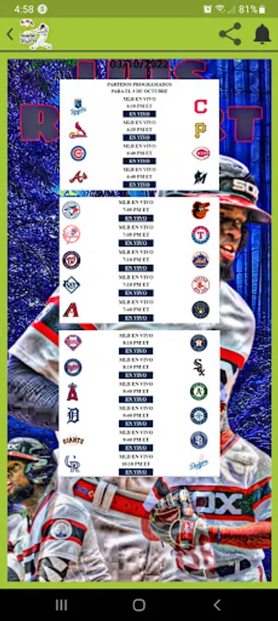 Here you can watch live baseball and know the table of the teams that open in the coming days, as well as the position of each team that opens in that course.