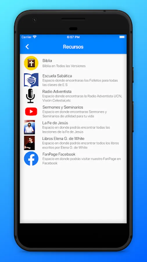 -Resources: Bible in all versions, Sabbath School Brochures, Colombia Adventist Radio, Faith of Jesus, Ellen G. White books, among others.