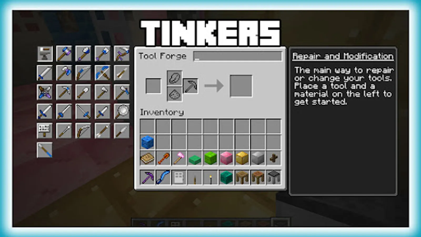 Tinkers Construct Mod for Minecraft is a mod that provides the plausibility to customize the make of gear for our character by purifying mineral assets and making molds for each of the pieces that make up a sword, an hatchet or any other question of character gear.