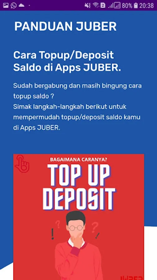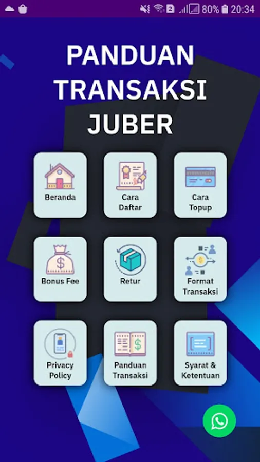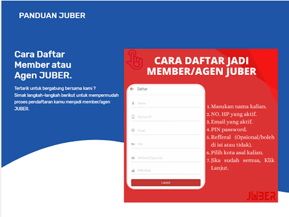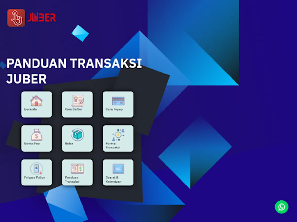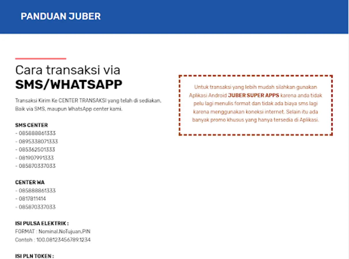 The Juber application guide is an android that can be used to make it easier for Users / Agents to use the JuberSuperApps Application, credit applications, PPOB, tickets, marketplaces, Online Transport, Food Online, etc. still like to make transactions using sms or WA.