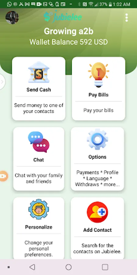 Connect your world with our exclusive chat application that brings the entire world within your grasp. We bring everything into one app. Jubielee is the only app that allows you to do instant international money transfers, buy and sell your personal items and have group video meetings, all with the click of a button. You can send money internationally as easy and as fast as sending someone a photo. The power is in your hands when you use our app.