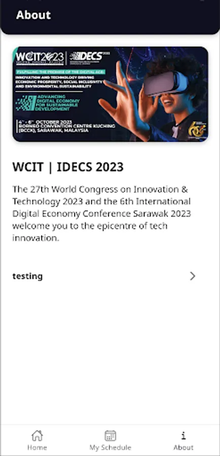 Introducing the WCIT | IDECS 2023 official mobile application, your ultimate companion for the congress at the prestigious Borneo Convention Centre Kuching, happening from 4 - 6 October 2023.