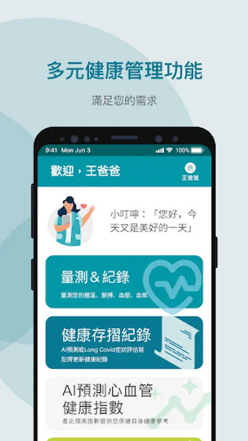 . Link with external hardware Bluetooth measurement devices such as forehead temperature gun, blood pressure machine and oximeter, and automatically upload to the APP through Bluetooth after measurement