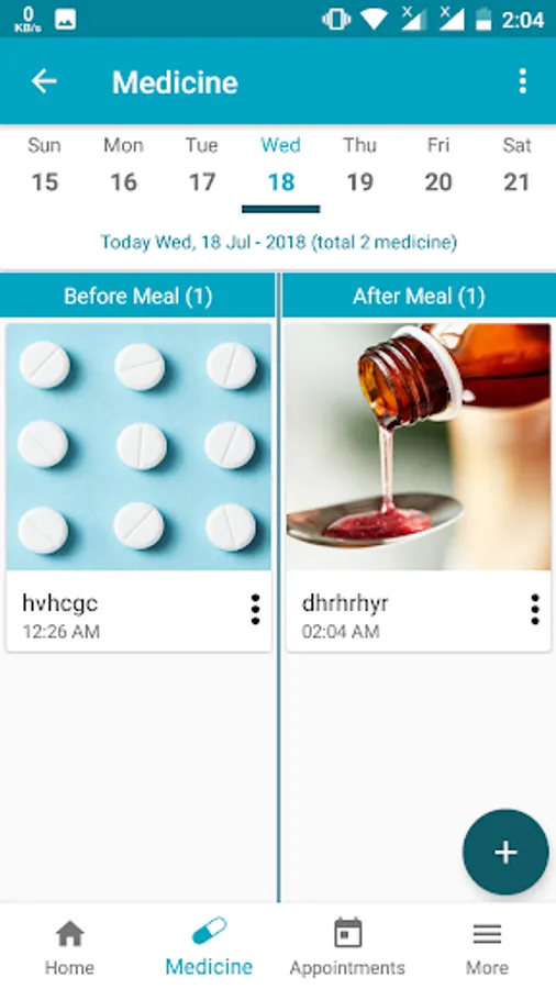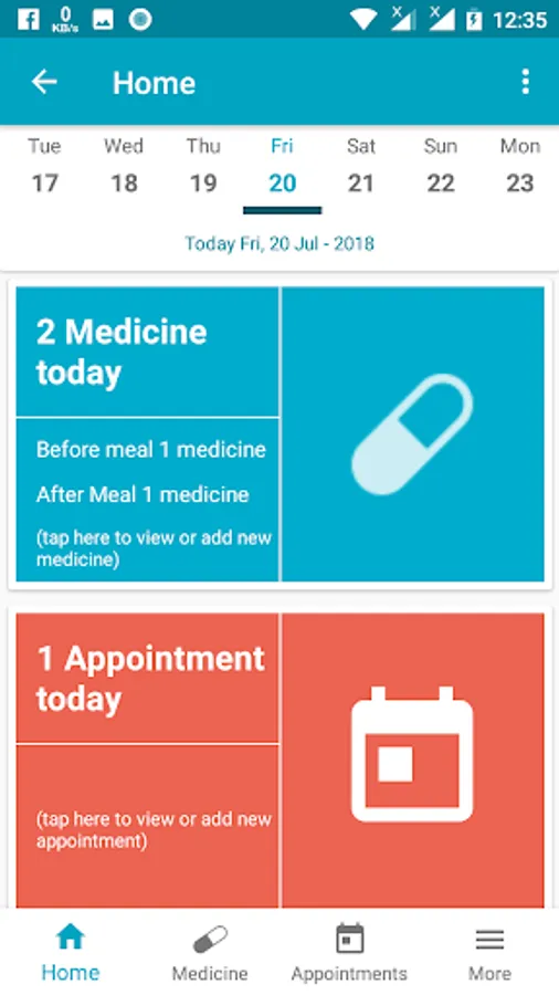 Suppose your current date is 20 June, 2018 and on that day you have 2 medicines and 1 appointment to any doctor. So in Home page Medicare will show you the total report of nay particular date.