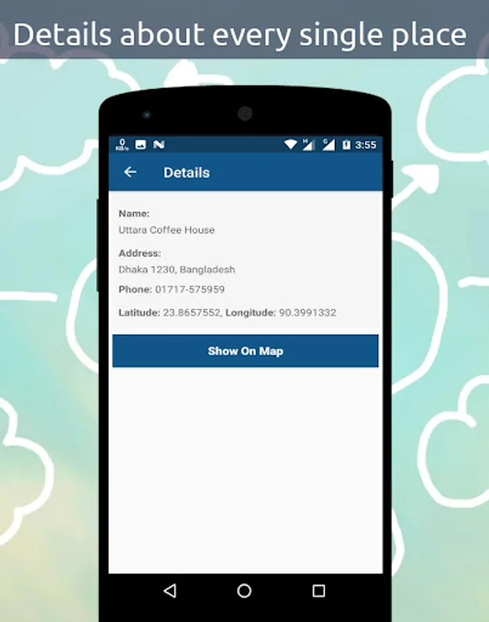 Then if one user want to know detail about that place just simply click any list then it will show the details about that place.