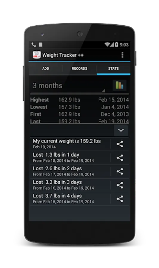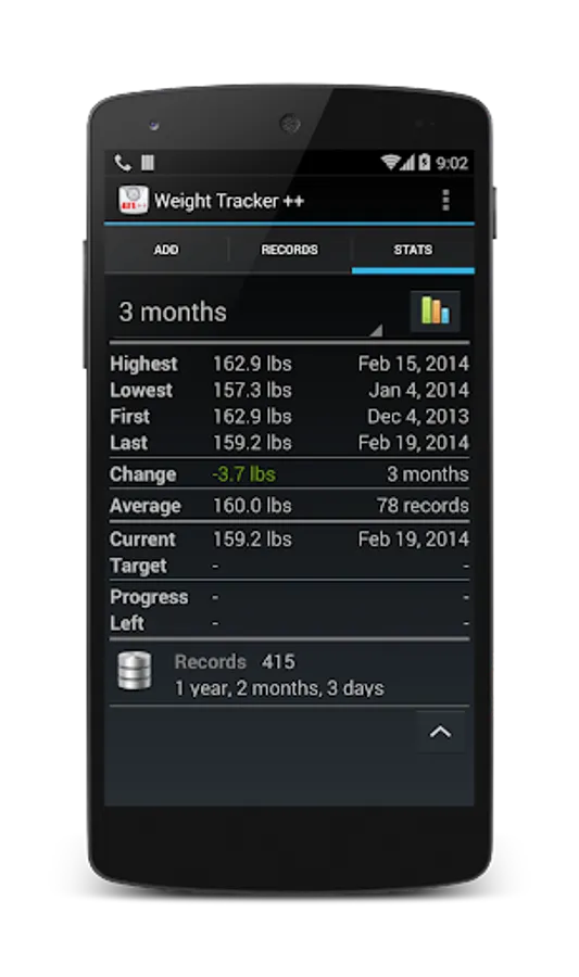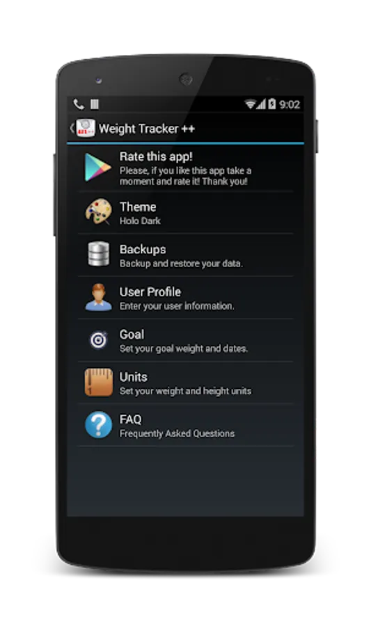- Sync across devices, simple data entry, set your goal, bmi calculator, weight change chart, share your weigh changes on Facebook or by email, generate csv files, etc.