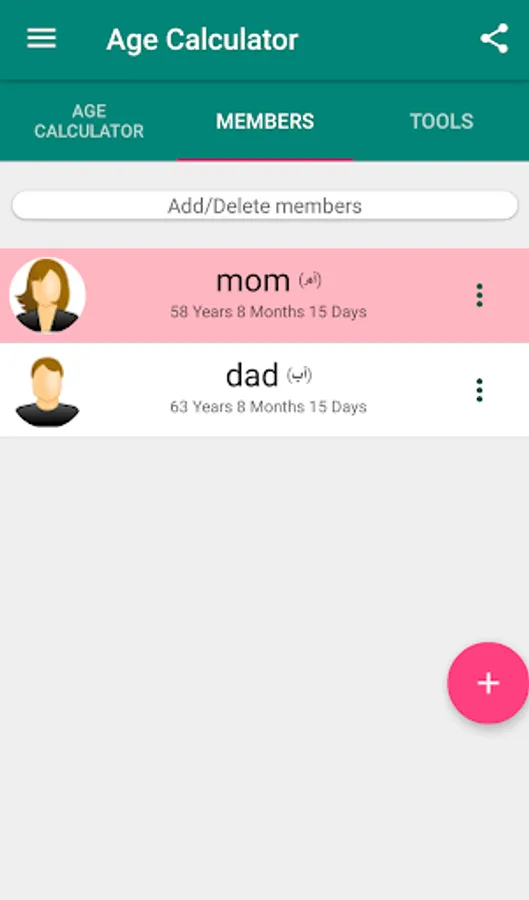 2- Add your family and follow up their ages.