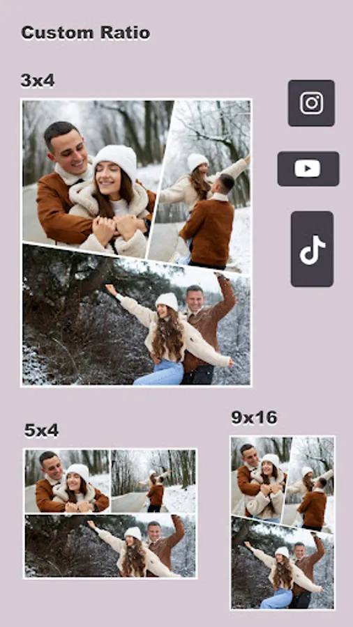 - Ratio customization: the easiest pic collage editor designed for Instagram. It supports multiple ratios e.g. 1:1, 3:4, 5:4, 9:16. You can also share collage photos with friends on Facebook, Twitter, WhatsApp, and Line in high resolution.