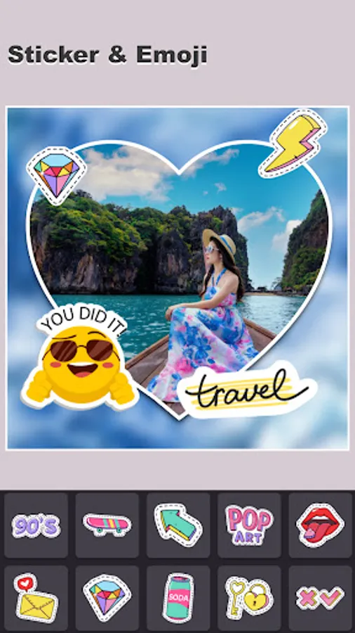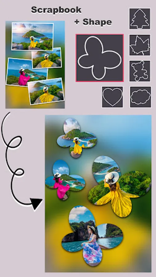 - Freestyle: select beautiful background with full screen ratio to create a scrapbook with Collage marker. You can decorate with pictures, stickers, texts, doodles, and share your scrapbook to Instagram Stories and Snapchat Stories.