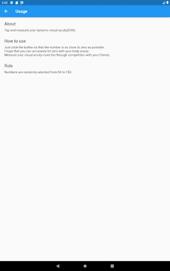 Measure and train your body acuity close to zero on fast-moving numbers.