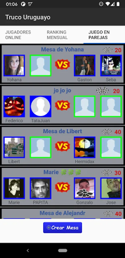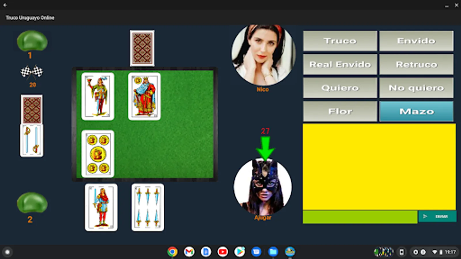 - New Pairs Game! Play the Uruguayan trick with a sample in our tables in pairs with up to 4 players. And with integrated chat on the screen!
