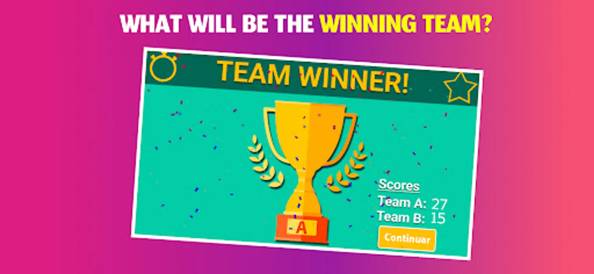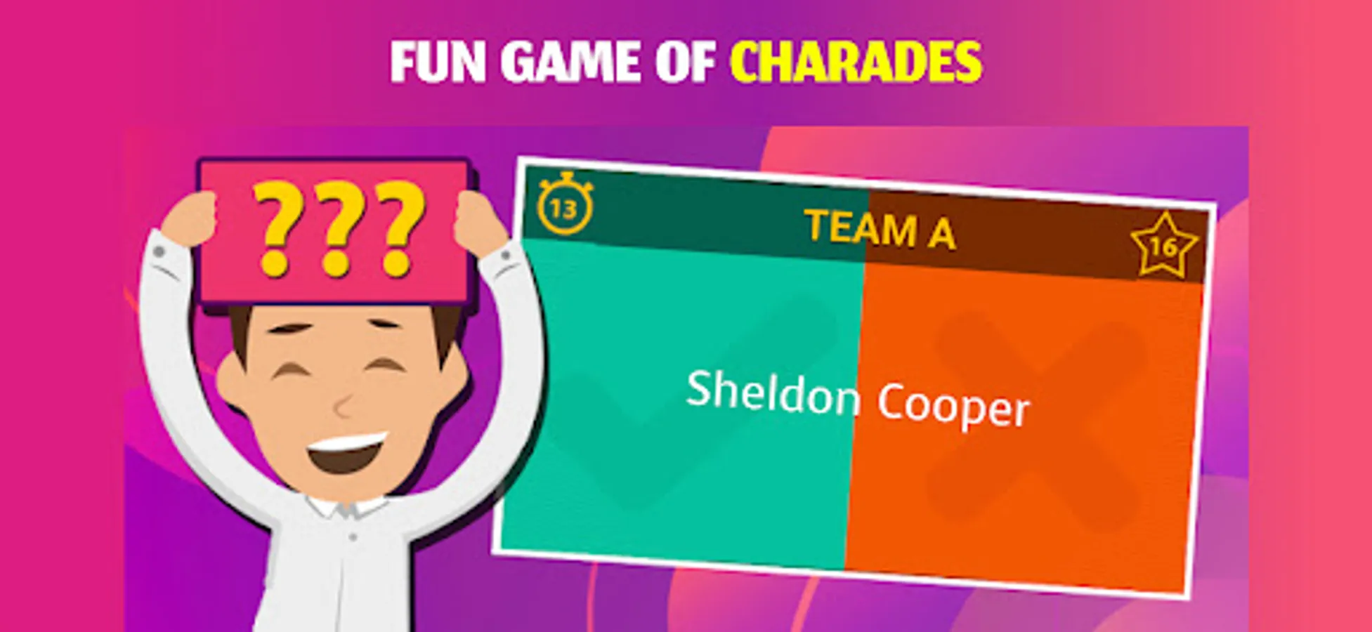 Charades (Team Game) is a fun game to share and laugh. The gameplay is simple, form 2 teams and guess the word that appears on the phone screen with the clues that your team will give you with different challenges from dancing, singing, acting or sketching - guess the word on the card that’s on your head from your friends’ clues before the timer runs out!
