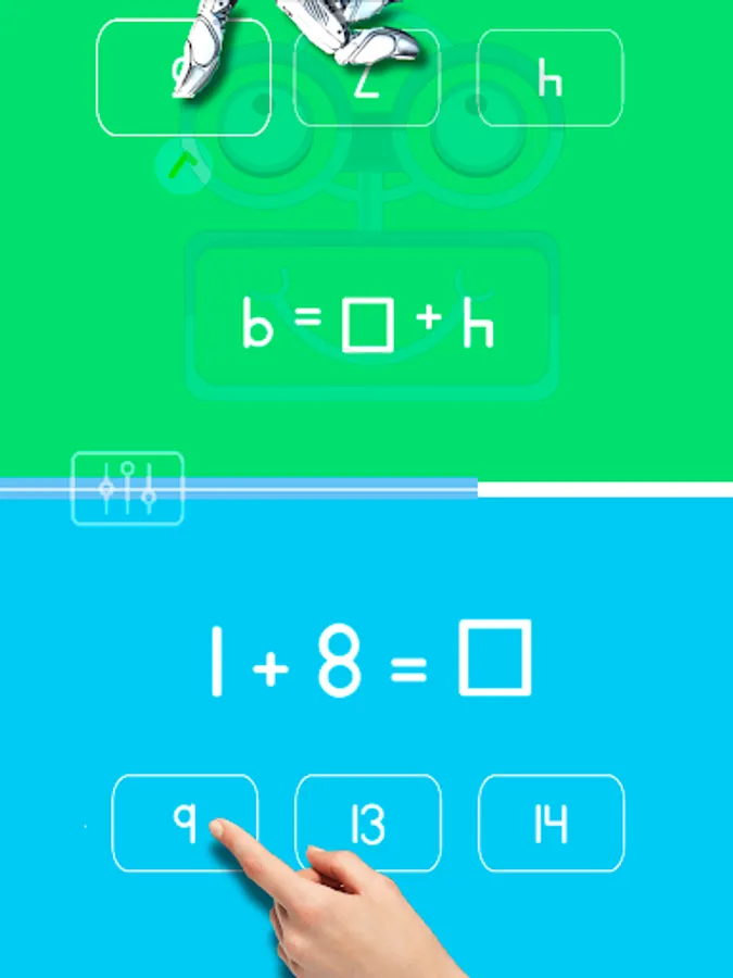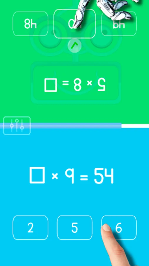 Challenge the robot "MathyBot" or play in "two players" mode.