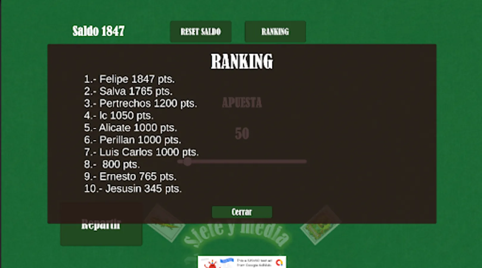 Classic game at half past seven in which to compete in ranking against the other players. Contests are held periodically.