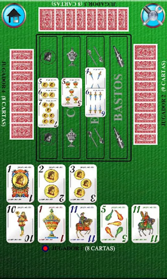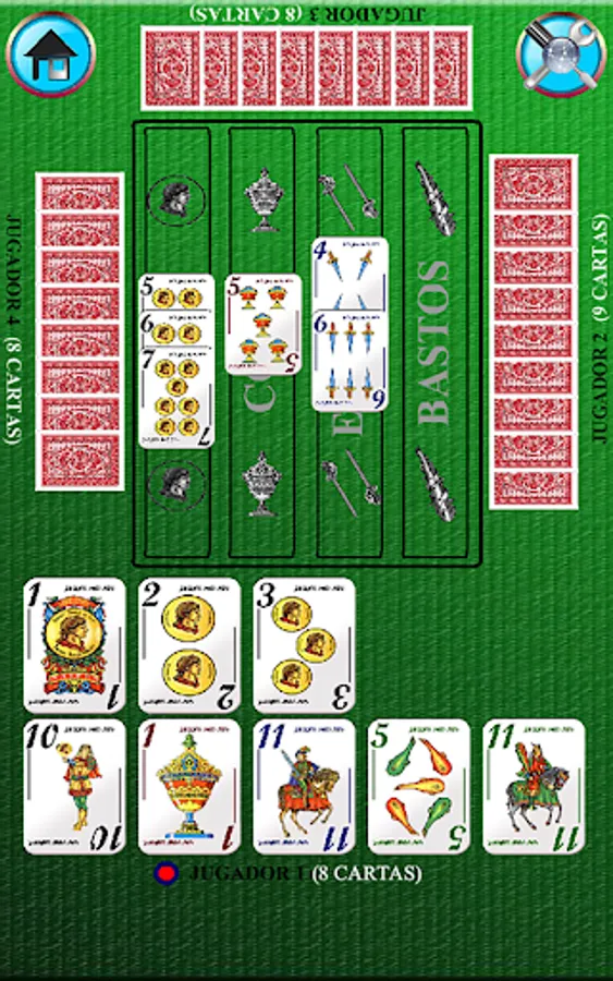 The player with the five of gold starts. Place the cards on the ladder from five up (King) and down (Ace). The first to run out of cards wins.