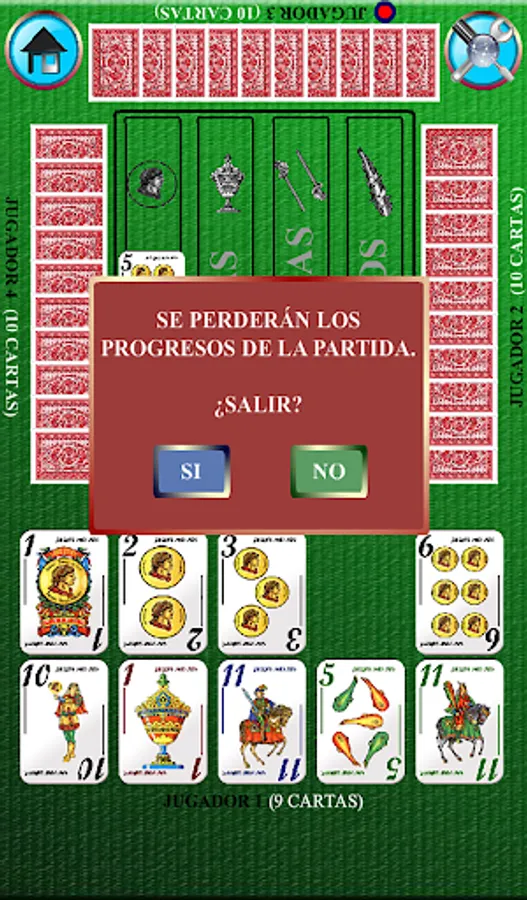 With the "Home" button it is possible to leave a started game, and with the "Options" button it is possible to change the game options during the game.