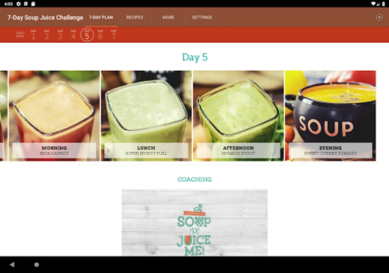The Soup' n' Juice Diet app brings to life Jason's super successful Juice Yourself Slim book (aka the Soup' n' Juice Challenge), and features everything you need to breeze through the plan, including: