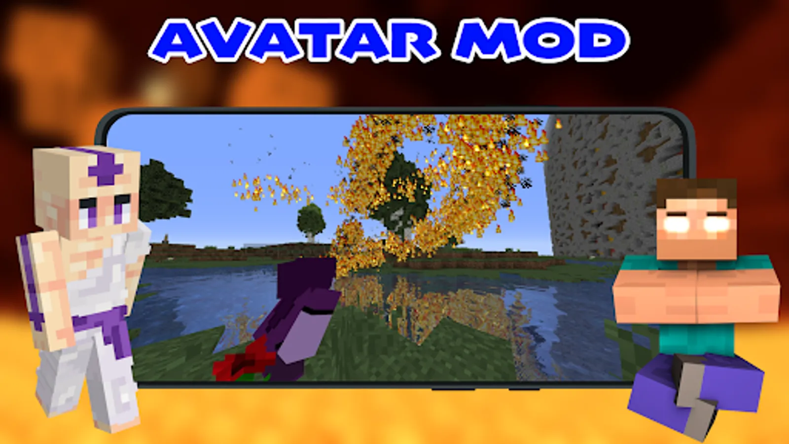 Are you a big fan of anime or Asian culture? Do you want to make your game experience more thrilling? Avatar Mod for Minecraft PE (pocket edition) is an addon which can add different characters from your favorite cartoon and their skins, as well as four elements (fire, water, earth and air), shaders and creatures to your pixel world of Minecraft. And thanks to realistic graphics and textures you’ll immerse yourself into Mincraft Universe.