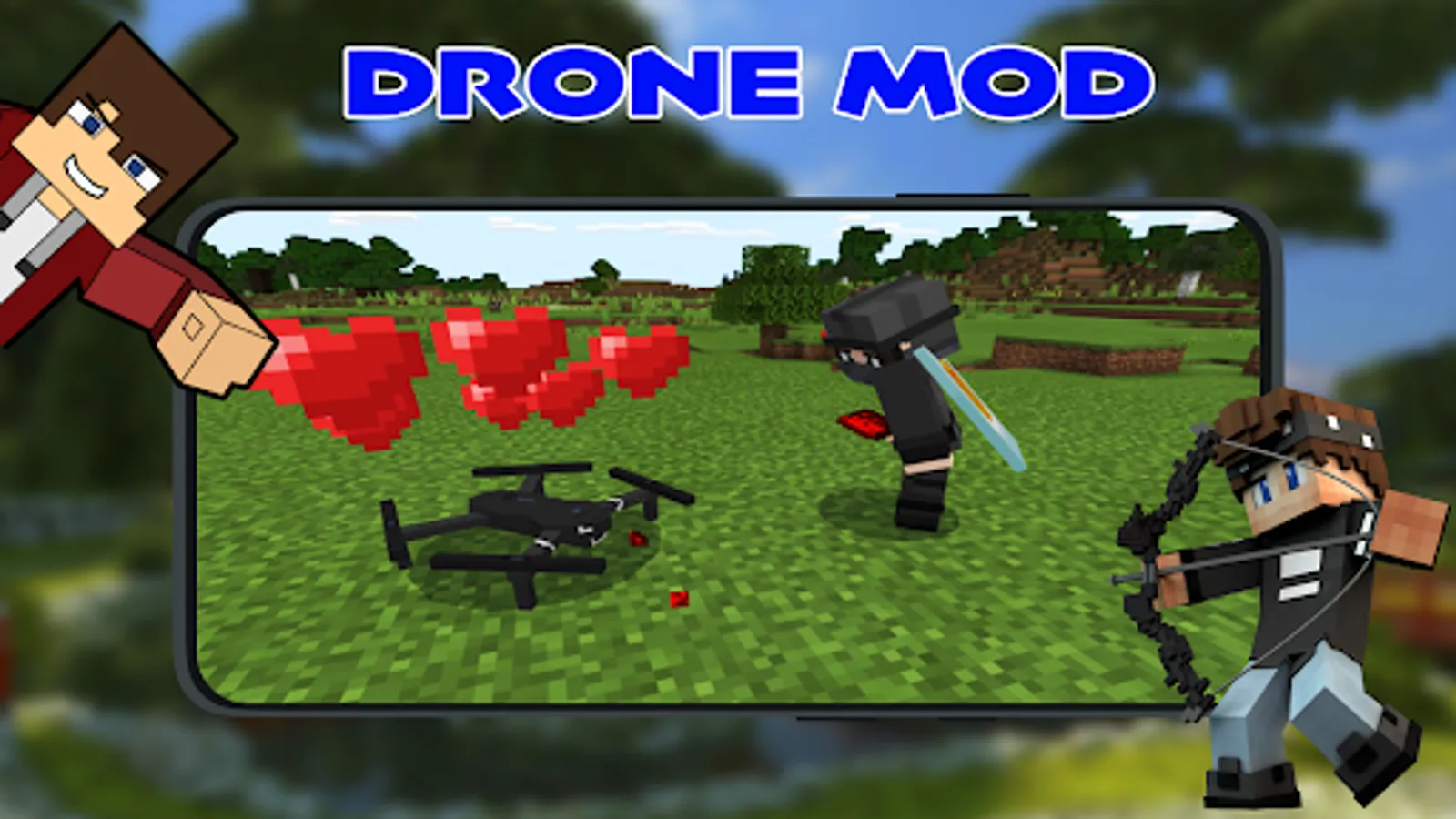 Drone Mod for Minecraft PE has three types of equipment. After downloading the addon you will get three famous drones mods. You will have equipment with full functions which you can easily use in MCPE.