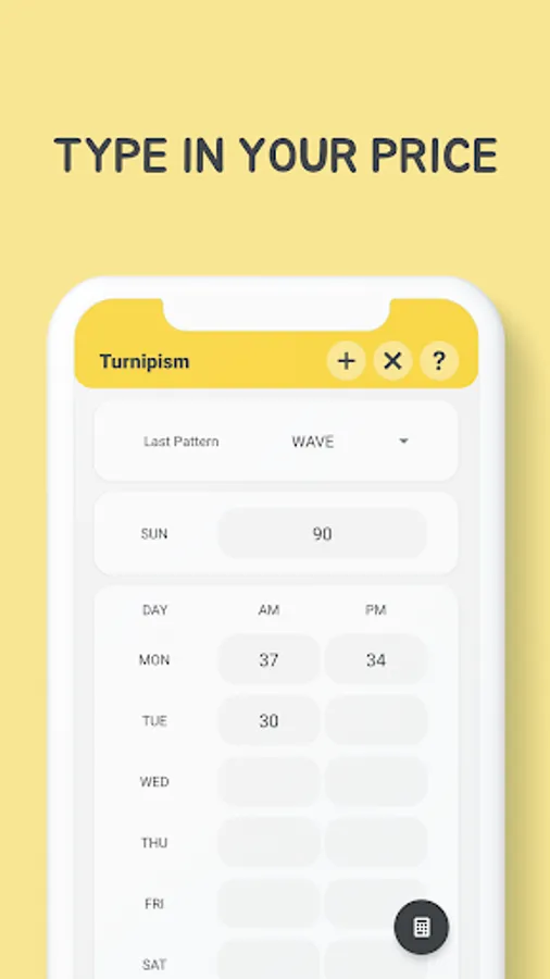 A white turnip price calculator of a week at Animal Crossing: New Horizon