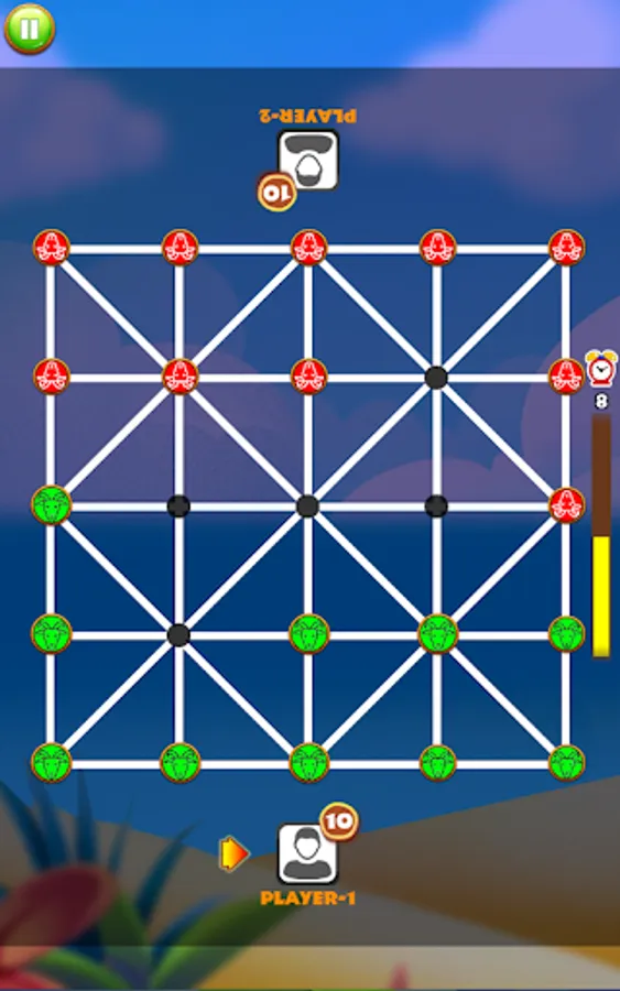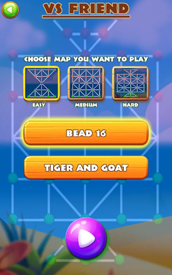 Tiger Vs Goat (16 Beads) is a fun, exciting, strategy board game to play with friends and family. This board game played between 2 players, or you can play this game with computer. This game is specially famous in India, Bangladesh, Srilanka, Nepal, Pakistan, Saudi Arabia, Indonesia.