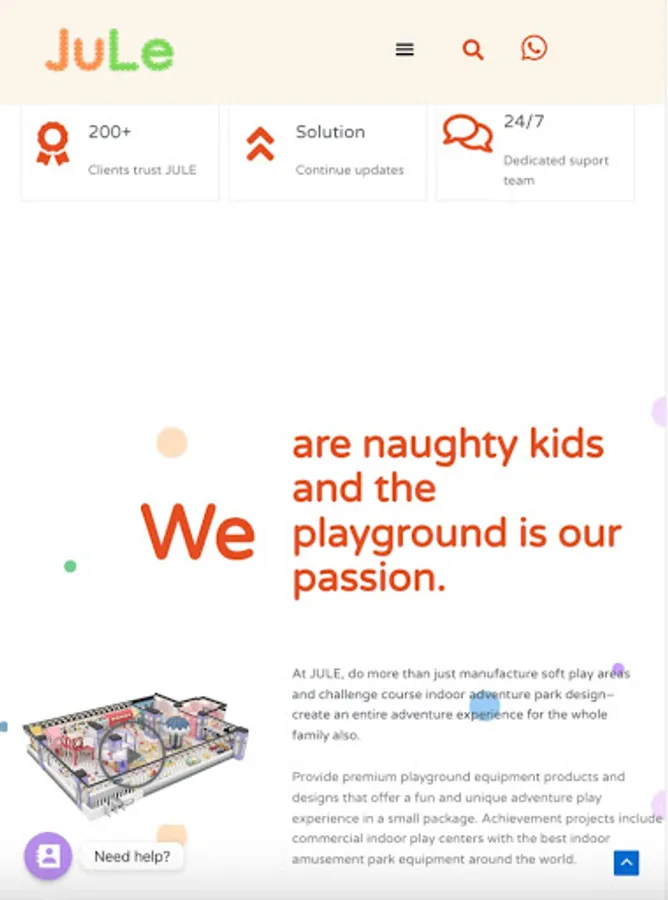 JULE has been in the non-powered playground equipment industry for over a decade and has established itself as a reliable brand that provides high-quality and innovative soft play equipment. JULE’s products are made using the latest technology, and they are designed to meet the needs between children and adults in different age groups. JULE commitment to quality and safety has made it one of the leading soft play manufacturers in the world.