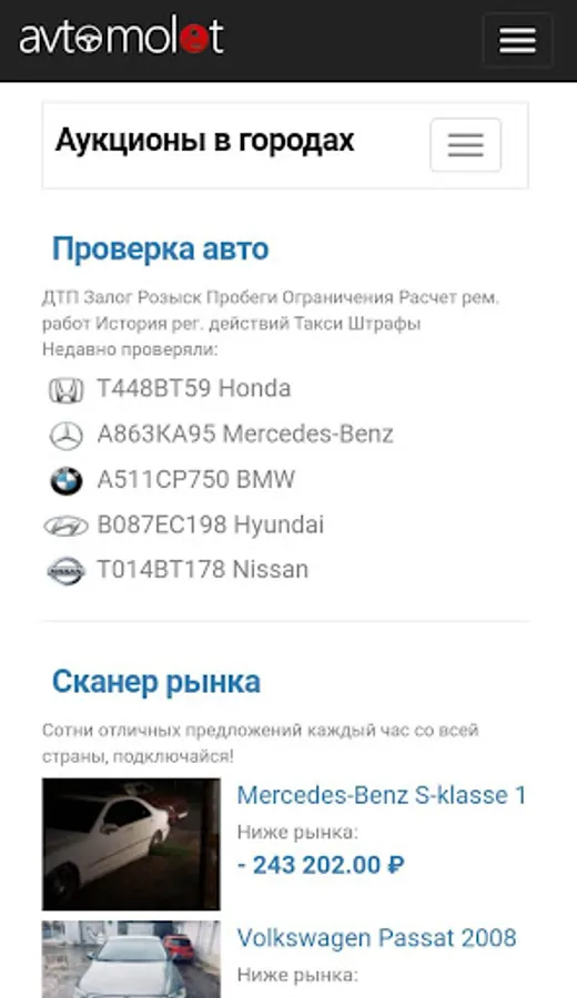 Avtomolot.ru is a Russian online service for organizing vehicle auctions for individuals and legal entities.