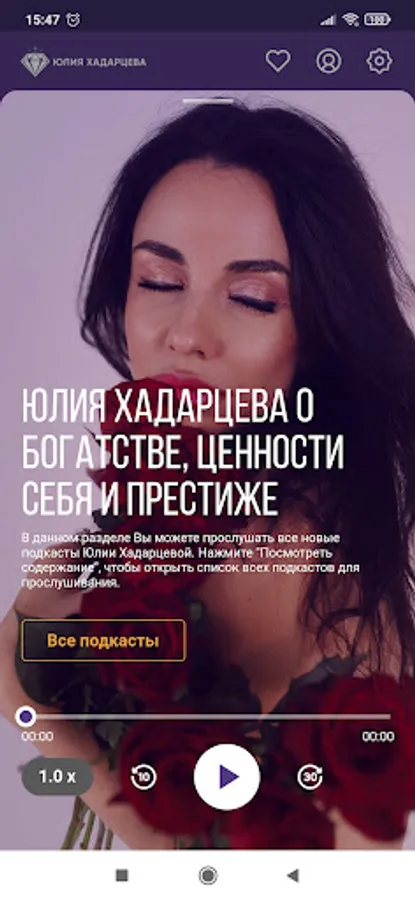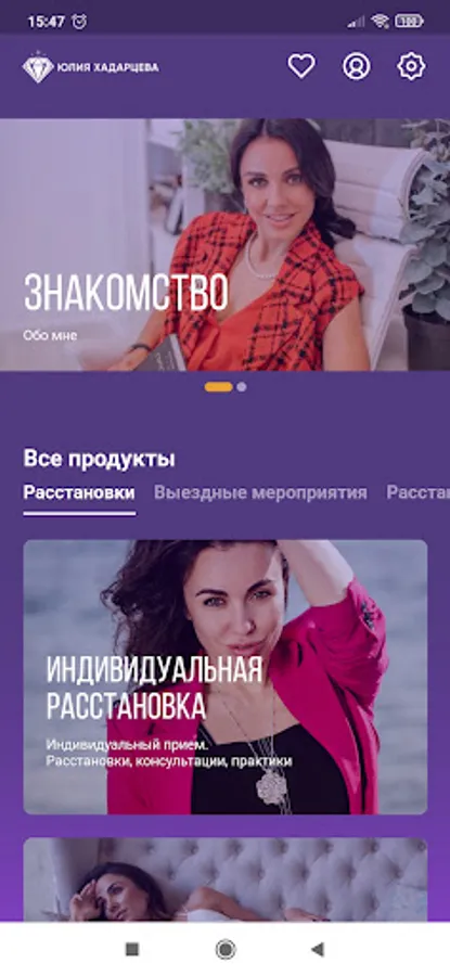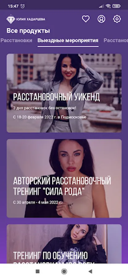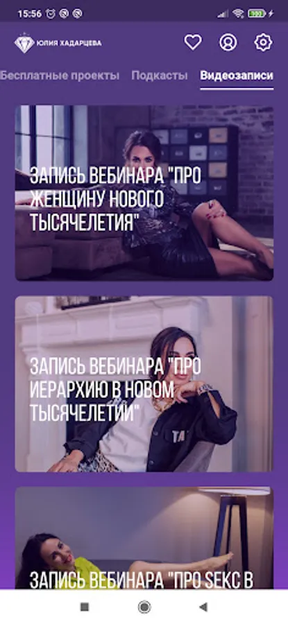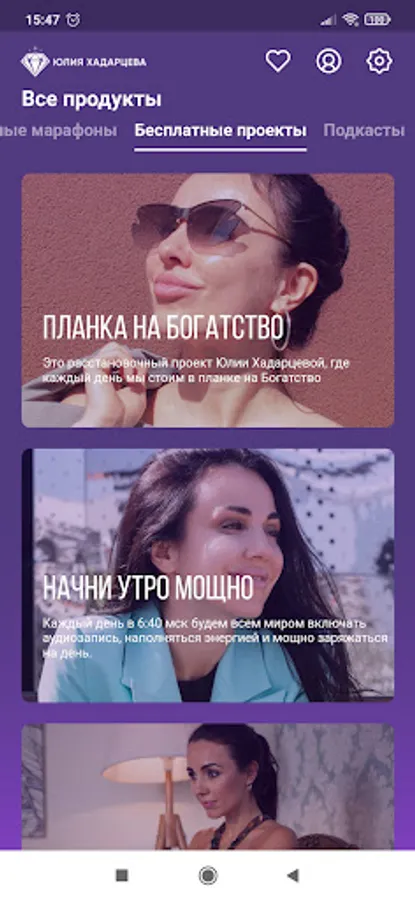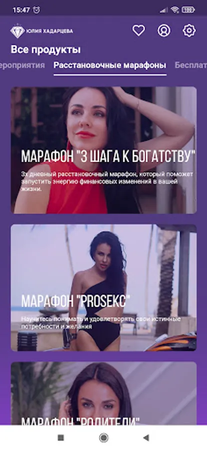 In this application, you can purchase any product of Yulia Khadartseva. The training is very conveniently implemented, you can take it at a pace that is convenient for you.