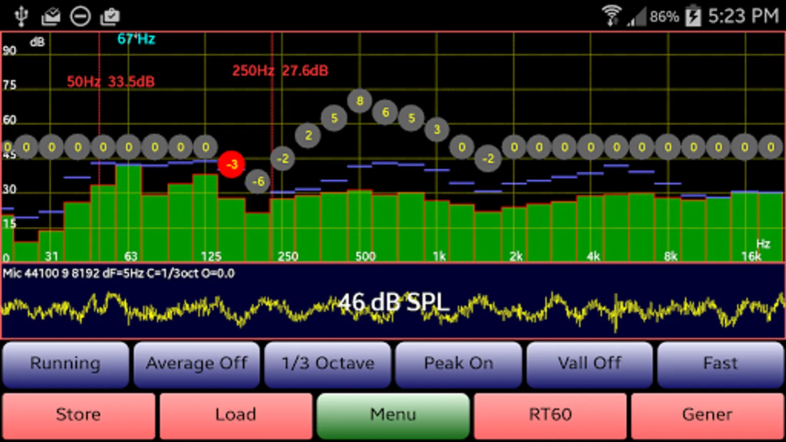 Exclusive ISO 1/3 Octave Calibration - can correct for your phone's microphone response. Octave calibration discs are moved up or down to obtain a flat response, and match the overall SPL to that of an external meter. Save/Restore of Cal files (popular Dayton Audio iMM-6, MicW i436, also supported).