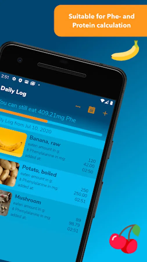 Thanks to the progress bar, you always see how much Phe/Protein you can still eat.