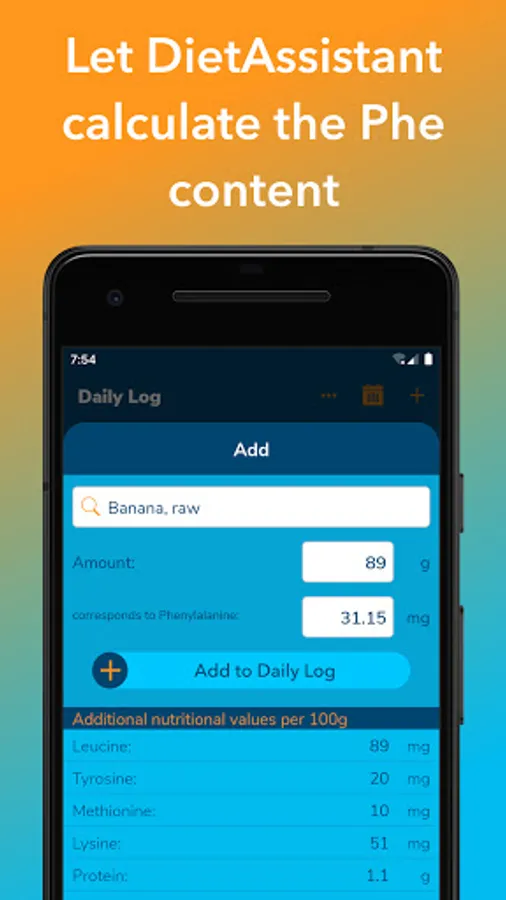 DietAssistant is the perfect Phe/Protein Calculator for people with the inborn congenital metabolic disorder PKU.