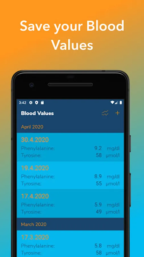 Store and edit your blood values and have them displayed in a chart to monitor and track your diet.