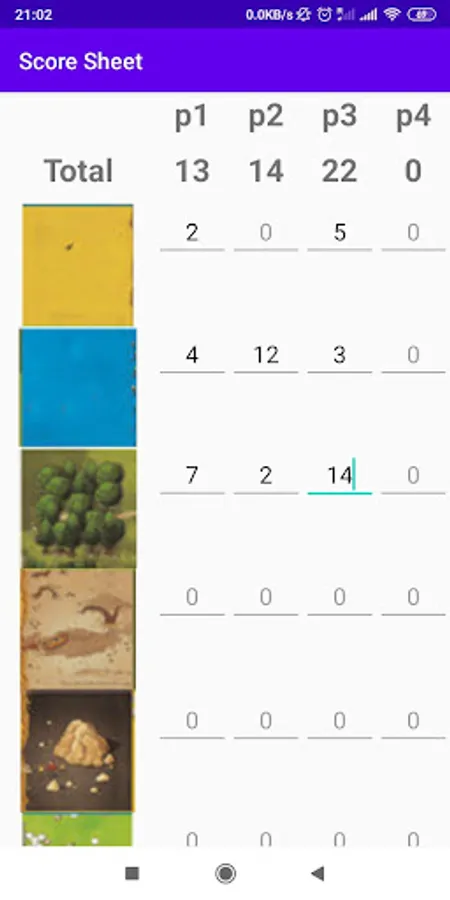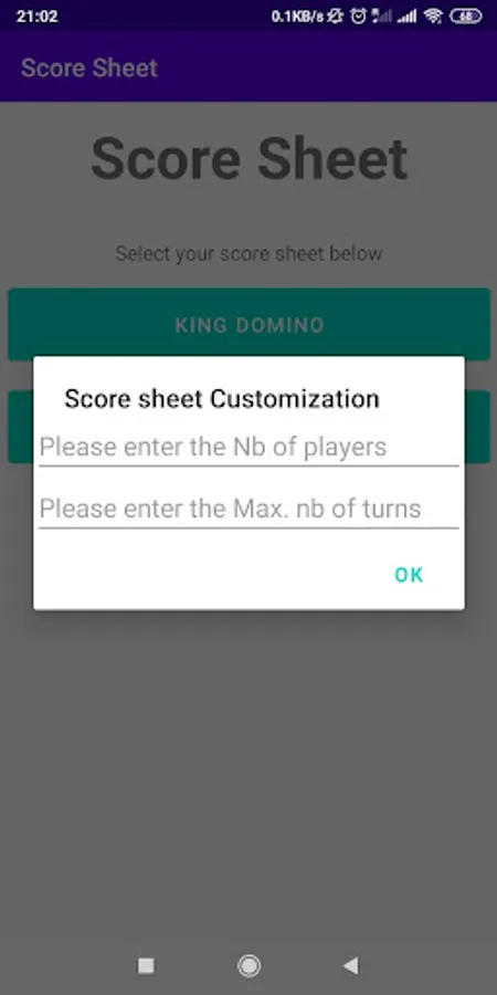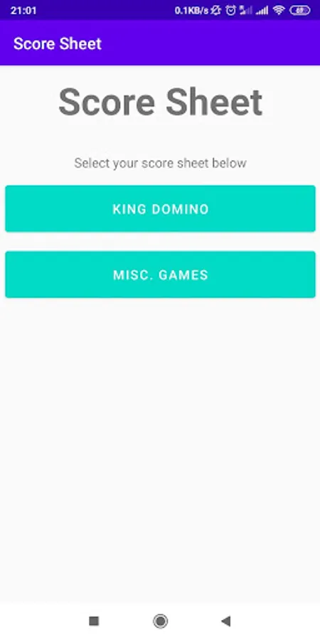 The app gives you a score sheet dedicated for the KingDomino game with an entry by area. A score sheet for other misc. games is available too (Scrabble, Uno, ...)