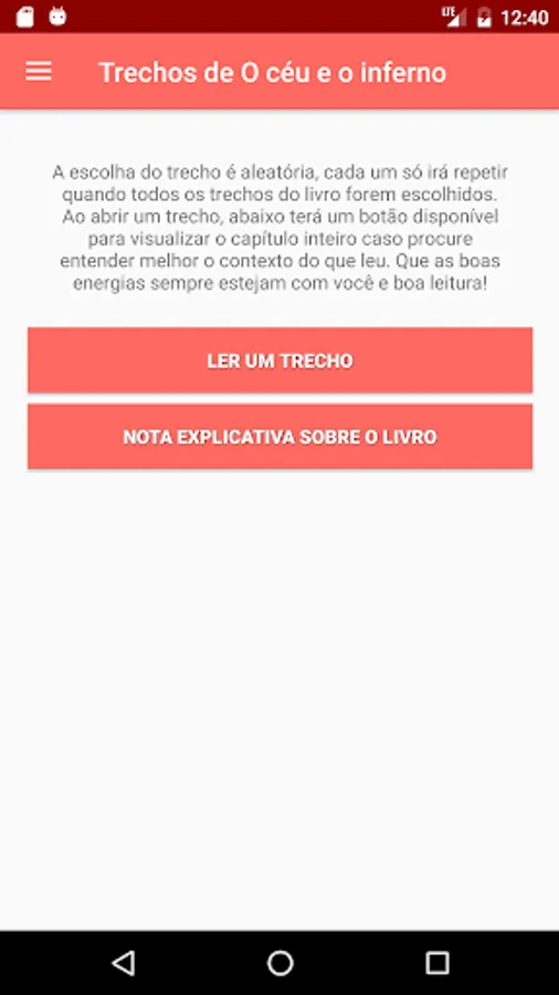 The application was created to encourage reading the book Heaven and Hell at any time of day.
